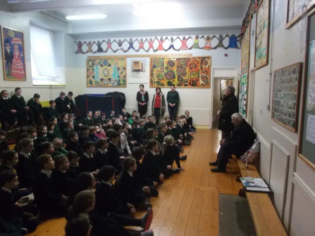 Tháinig Martin Behan agus Frank O’Donoghue ó Choiste na mBailte Slachtmhara Chluain Meala ar cuairt chun an bonn óir a bhuaigh siad a thaispeáint dúinn. Tháinig siad sa chéad áit don ghradam pailneoireaghta agus bhronn siad cóip den teastas orainn mar chomhartha buíochais don tacaíocht a thugann an scoil dóibh. Comhghairdeas linn go léir.