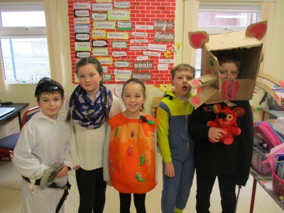 Book characters of every description were to be seen in school today as we celebrated World Book Day. Well done to all who went to great rounds to dress up. Don’t forget to get your free book with the token given out in school. More information on World Book Day can be got at http://www.worldbookday.com/world-book-day-ireland/