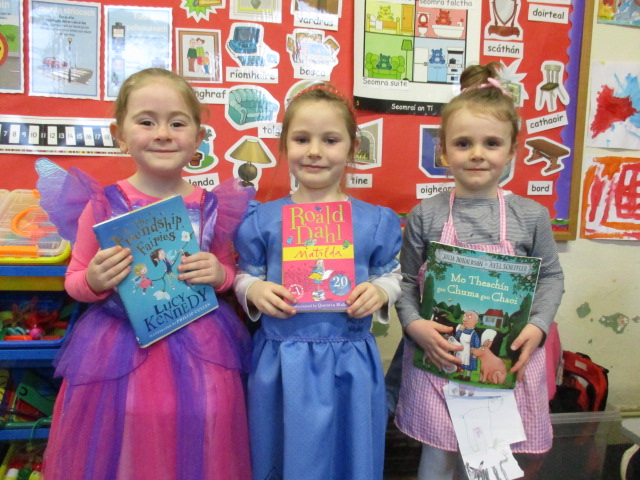Bhi lá iontach sa scoil ar an 28ú Feabhra ag ceiliúradh Lá Domhanda na Leabhar. Ghléas gach páiste suas mar an carachtar is fearr leo ó leabhar.
