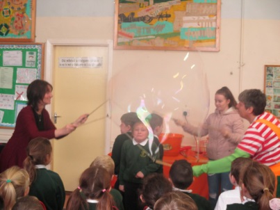 First, Second and Third Class attended a Science Workshop on bubbles. We learned all about bubbles form Caroline from Bubbly Science. We thank Waterford Institute of Technology for organising this wonderful workshop.